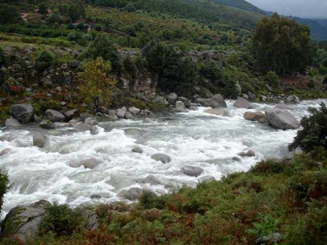 La Garganta de Alardos va a morir al río Tiétar, que es afluente del Tajo y forma varios charcos naturales, que se convierten en improvisadas piscinas.